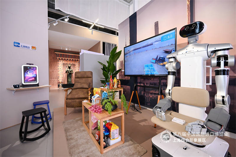 在主场馆中央广场的上海馆内,雷允上的AI智能中医设备“中医镜”四诊仪,观众戴在手腕上便能完成“望闻问切”,并提供个性化的养生方案;有辅助老年人起身的阅康律动沙发椅;还有既能辅助老人起居,还能化身“智能座驾”的“齐家”养老护理机器人。
